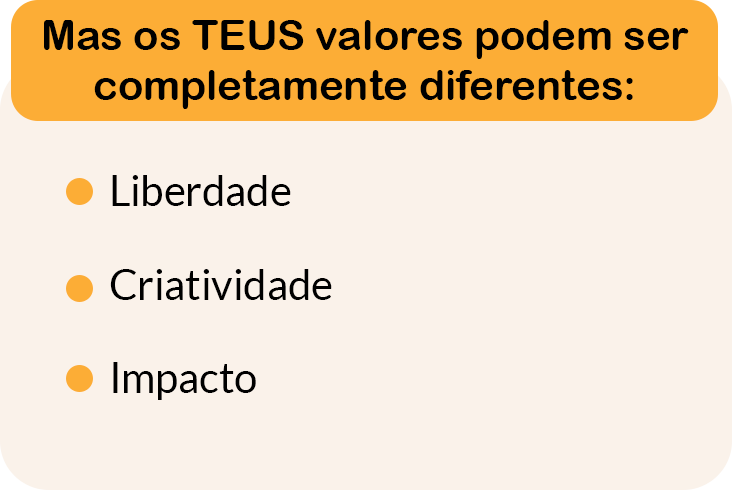 R: SIM. Valores são universais. Aplica-se a carreira, relacionamentos, saúde, propósito – TUDO.